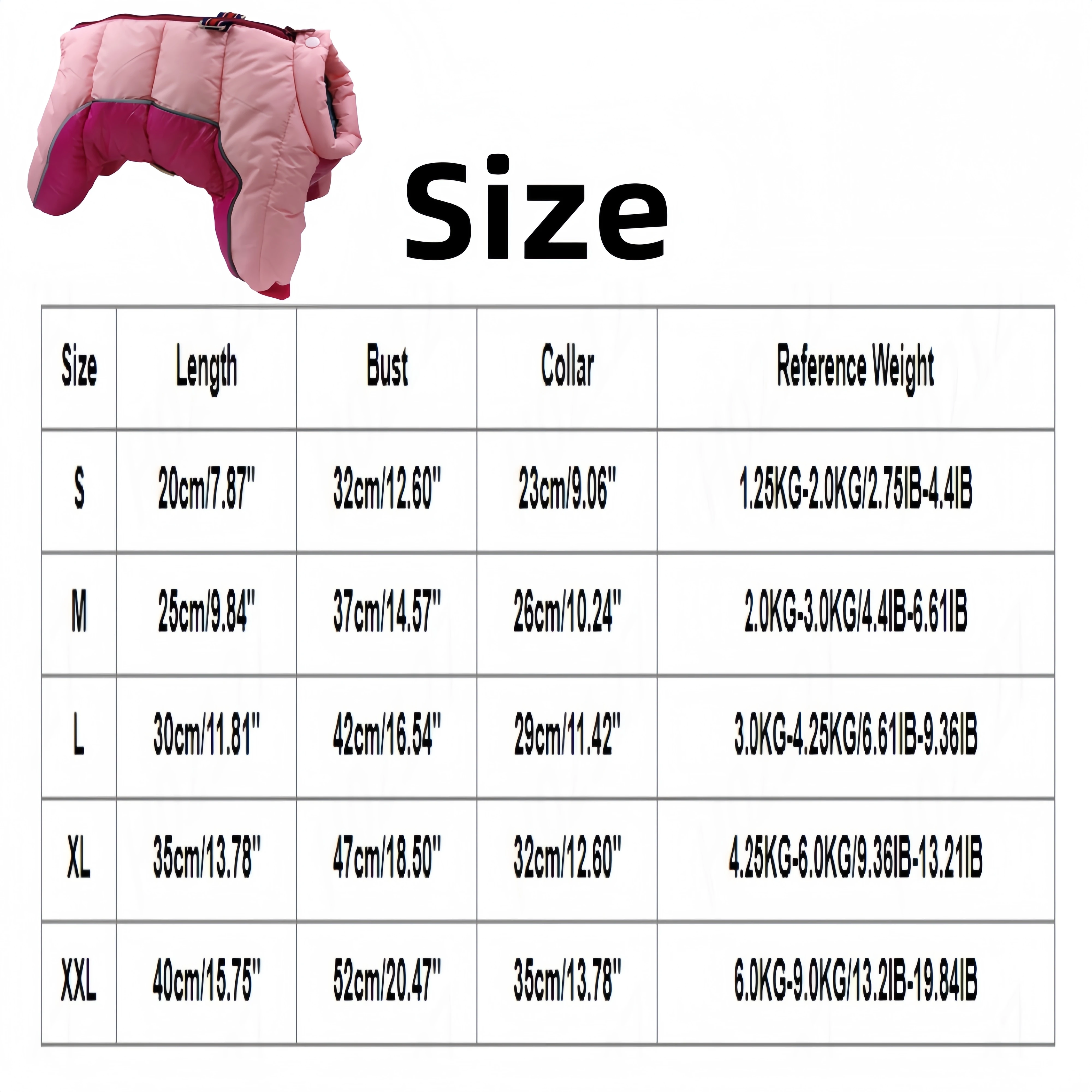 Size Length Bust Collar Reference Weight