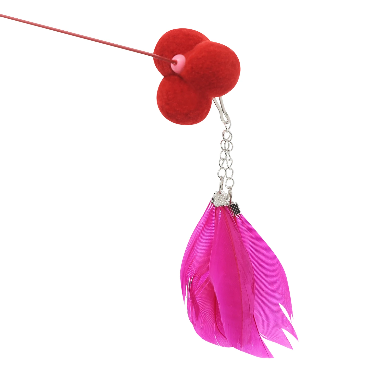 Cat Teasing Stick: By moving the cat teasing stick quickly, it can simulate the actions of prey, such as a bird, thus stimulating the cat's hunting desire, allowing them to pounce and chase, satisfying their nature.