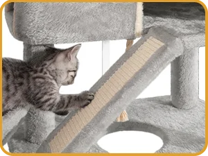 Estable y seguro: La base de este rascador para gatos está hecha de madera gruesa e incluye almohadillas antideslizantes para evitar que se tambalee o vuelque. El kit antivuelco mejora la estabilidad.