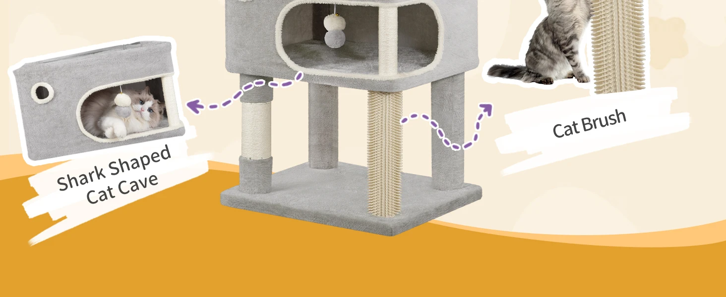 [Decora tu hogar] Su elegante forma de tiburón y la combinación de colores gris claro y beige le dan un toque moderno a cualquier hogar. Este rascador de peluche también decora tu casa.