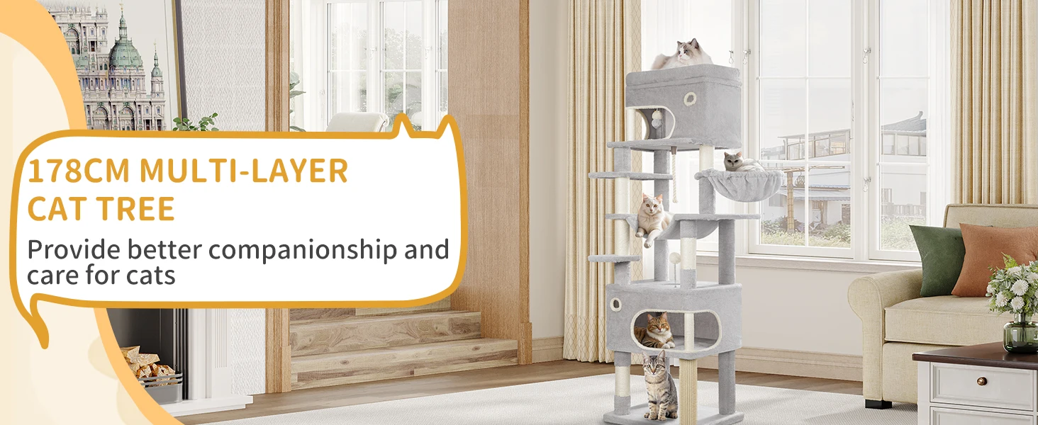 [178 cm de altura, diversión sin fin] Este árbol para gatos tiene 7 niveles, y la distancia entre ellos se adapta a los hábitos de salto de los gatos. Tanto gatitos como gatos adultos pueden trepar fácilmente.