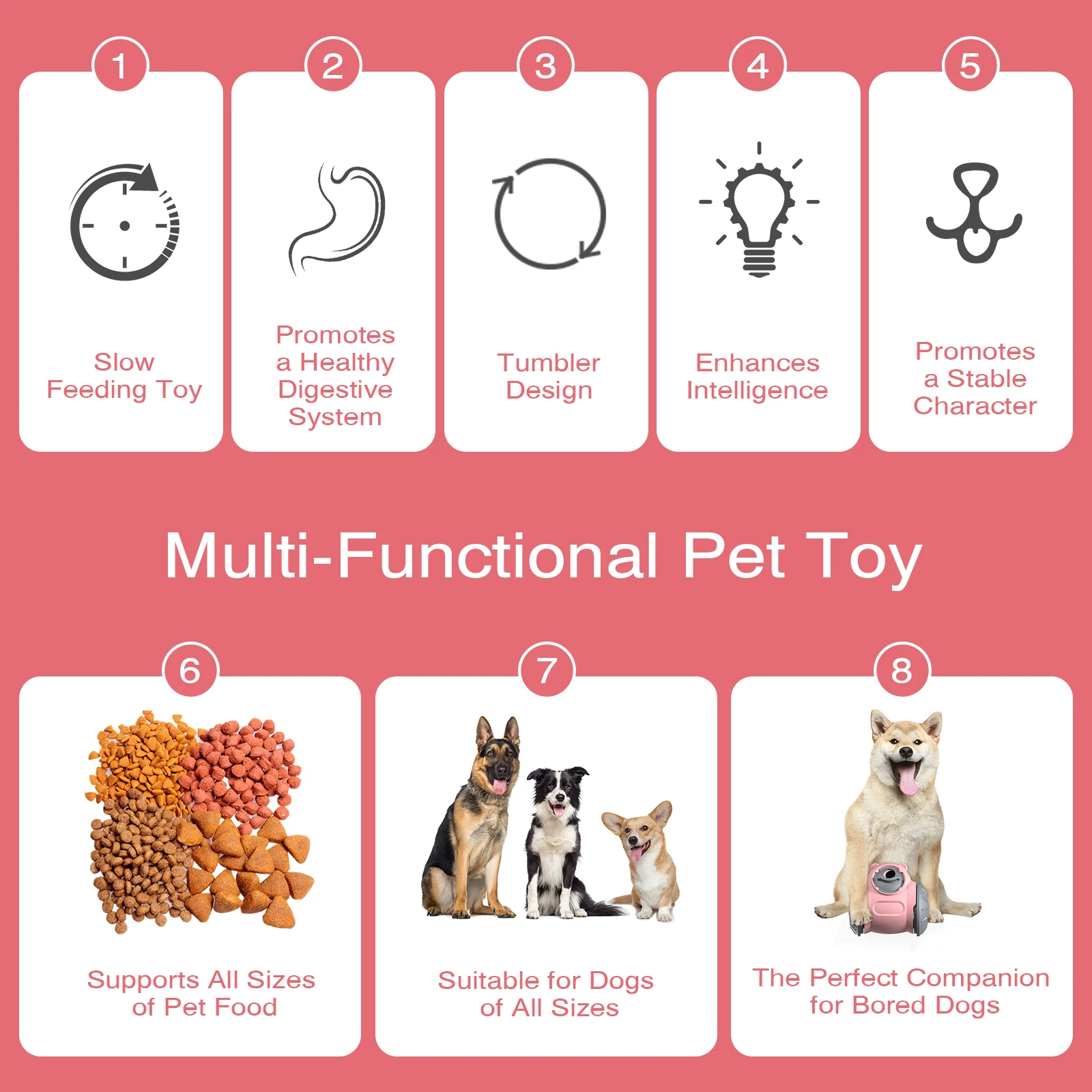 El juguete puede usarse como dispensador de comida para perros. Cuando el perro empuja el juguete, este se mueve dentro de un área fija, lo que le permite perseguirlo y jugar con él continuamente. A medida que el juguete se mueve, la comida se escapa.