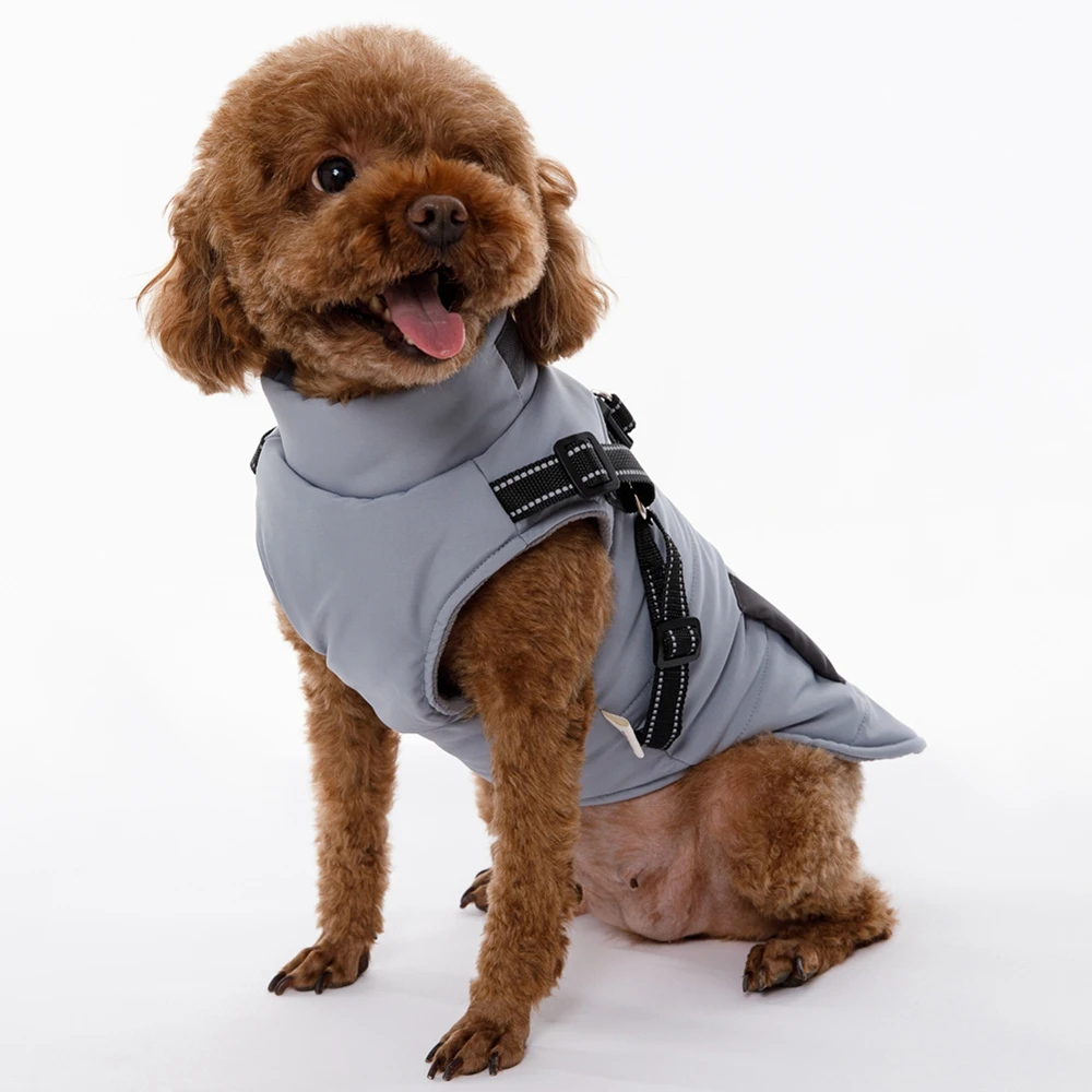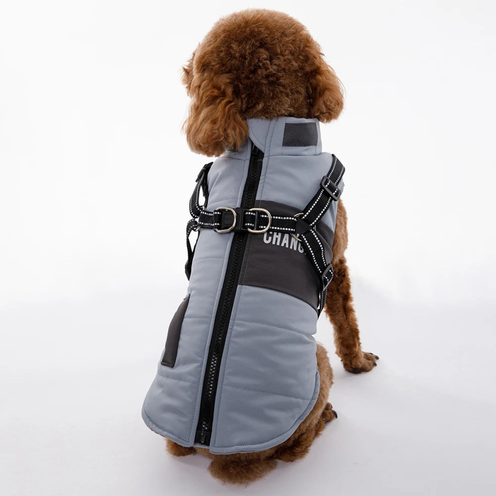 Ropa de invierno cálida para perros, chaqueta para mascotas con arnés, abrigo impermeable
