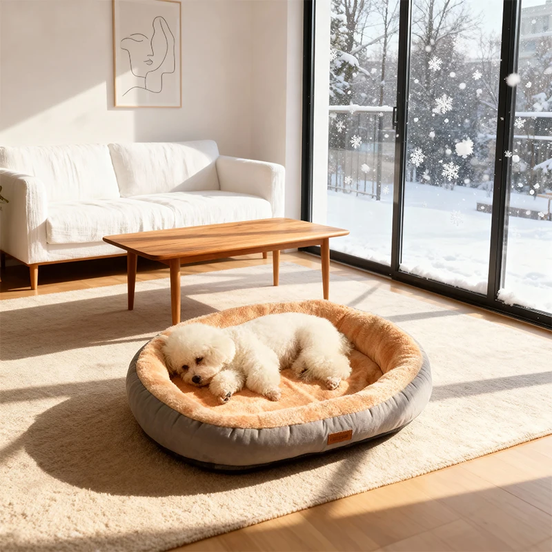 Confeccionada con un material afelpado, esta cama para mascotas garantiza la transpirabilidad, manteniendo a tu amigo peludo cómodo durante las noches frías.